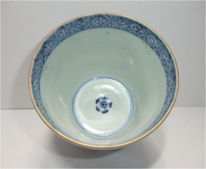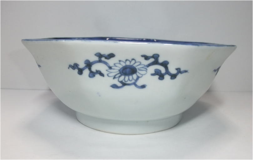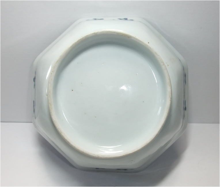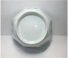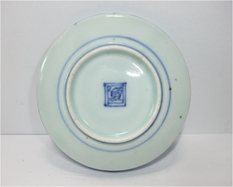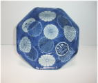 No.26040101 \10,000(1客) \47,000(5客セット) 染付菊花尽くし八角鉢。 寛政。 寛政期に制作された数物としては大振りの作品です。全体の下地に染付のダミを使用して丸文感覚で白抜きにし数種類の菊花文と寿文を描いています。絵付けセンス抜群のお洒落な作品です。大振りの鉢なので使い勝手良いと思います。 傷なし 17.3cmW×6.7cmH 1客売約済 |